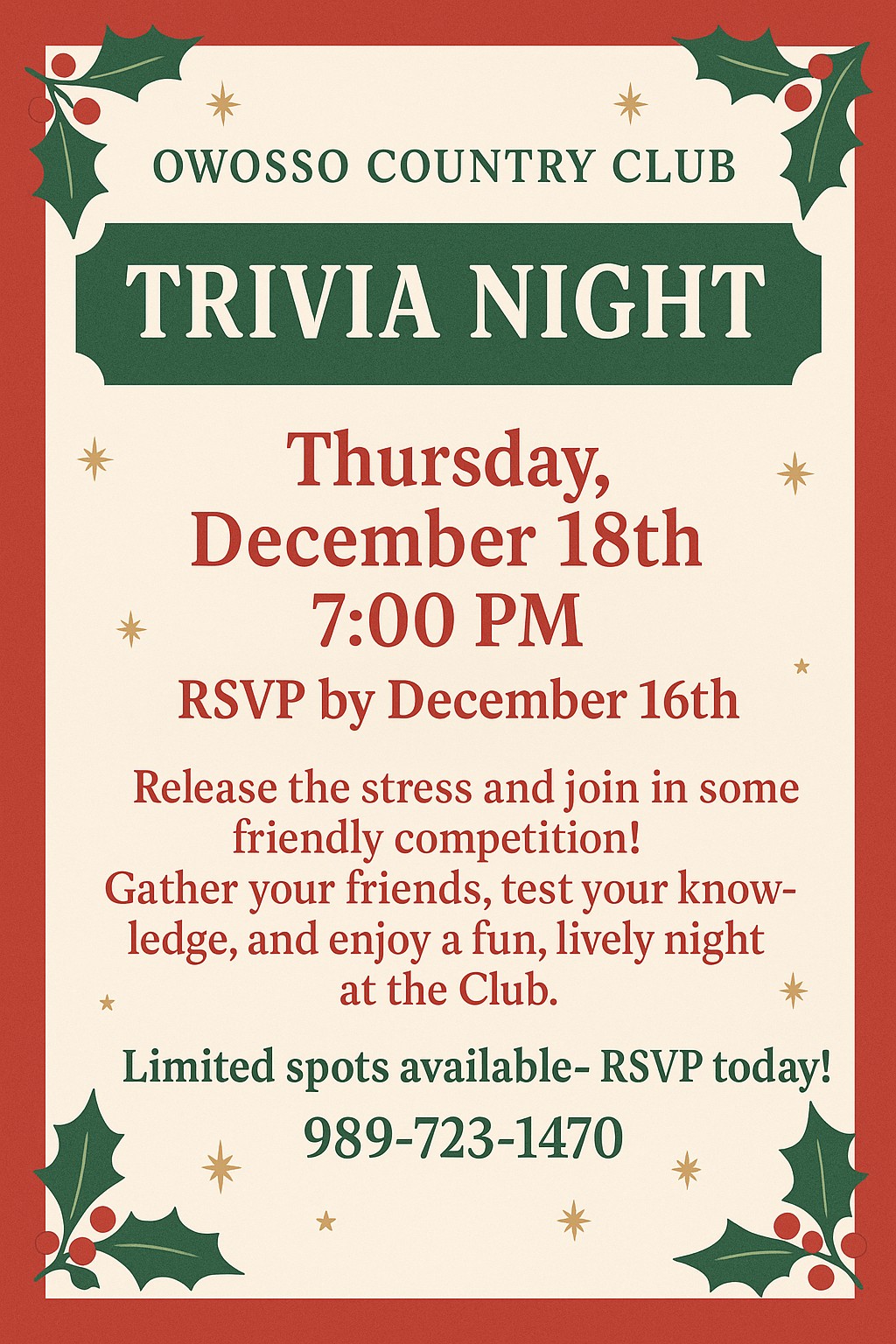 The Owosso Country Club is a premier private country club located in the historic town of Owosso, Michigan; a short drive from Lansing, Flint and Saginaw. Founded in 1923, the Owosso Country Club is a family-oriented Club that offers a classic 18-hole golf course and the area’s finest dining and social facilities.